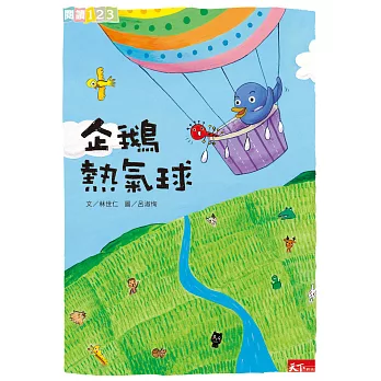 有一天,企鵝駕駛著漂亮的熱氣球,緩緩降落在森林邊的草原上,他大聲宣布:「坐上熱氣球,天空任悠遊!」草原上的小動物聽到了,都躍躍欲試。