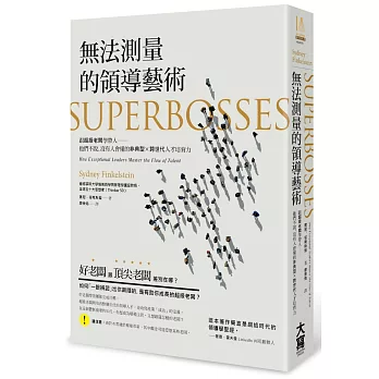 ?芬克斯坦結合精彩故事與實用建議,帶領讀者展開驚奇探險,認識一流人才,以及他們的超級老闆。──詹姆斯.基爾茲(James M. Kilts)/吉列(The Gillette Company)公司前董事長兼執行長